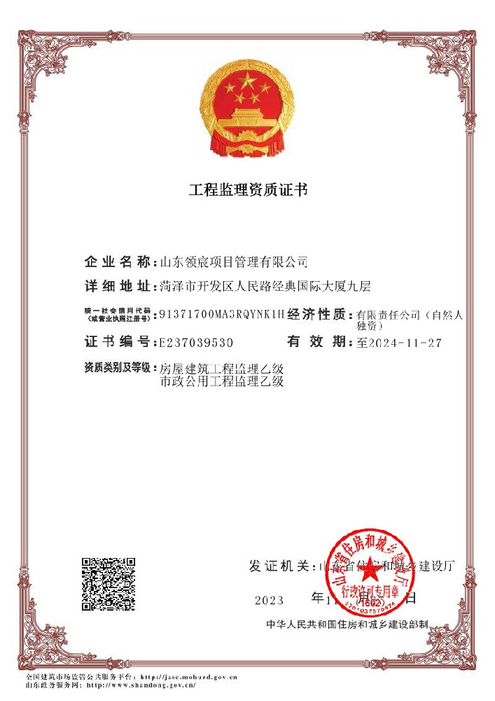 山東領宸項目管理有限公司是一家以全過程工程咨詢為核心的咨詢服務公司,本公司現具備工程造價咨詢乙級資質,房屋建筑工程、市政工程監理乙級資質和招標代理備案。公司擁有專業的工作團隊及豐富的行業經驗,在行業領域內具有雄厚的實力,企業管理人員擁有行業20年以上的資深行業工作經驗。公司現有專業技術人員50余人,具有一級注冊造價工程師、注冊監理工程師、一級注冊建造師、二級注冊建造師、招標師等工程類國家注冊執業資格證書人員合計30余人以及高級工程師3人,持證上崗率達到90%......